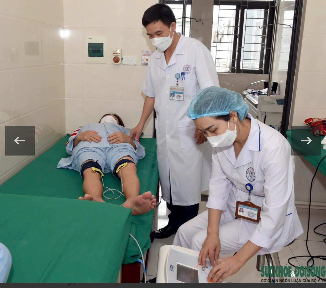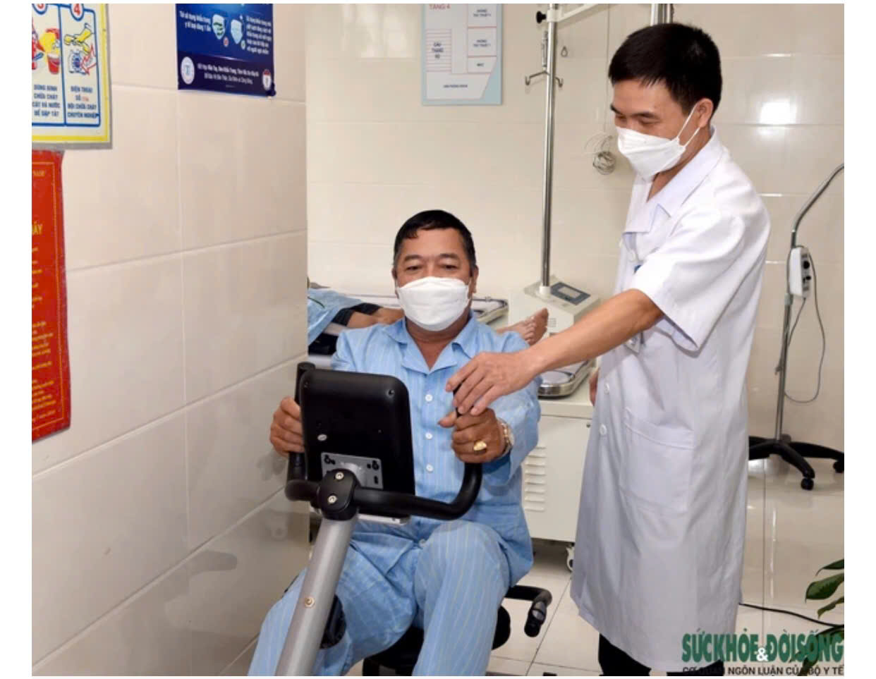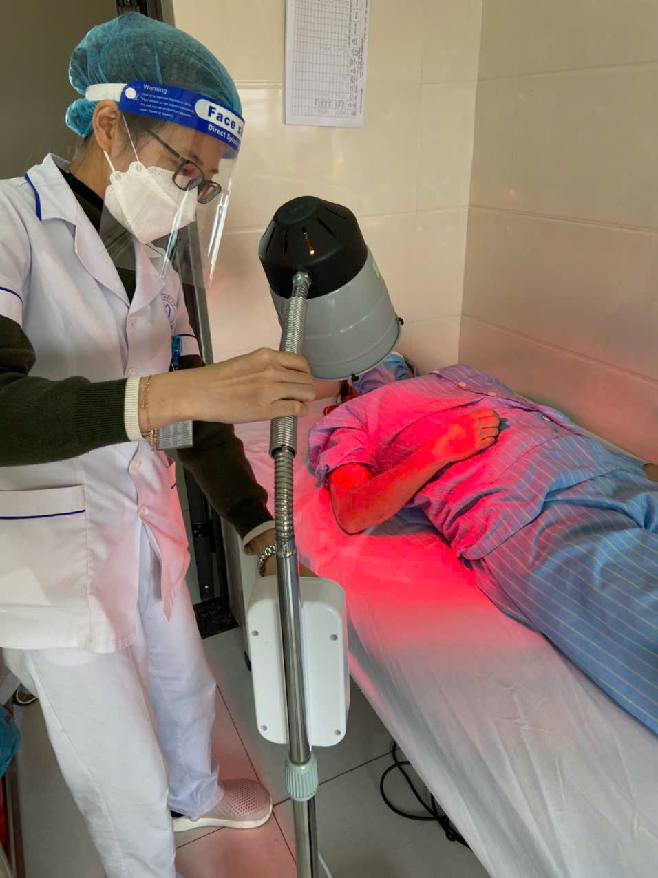 Bác sỹ hướng dẫn bệnh nhân thực hiện phục hồi chức năng
